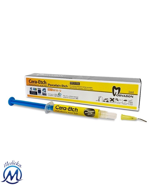 پاسخ: اسید اچ پرسلن مروابن یک ماده اچکننده بر پایه اسید هیدروفلوئوریک (HF) ۹.۵٪ است که برای ایجاد میکروزبری سطحی روی سطح داخلی رستوریشنهای سرامیکی (ونیر، لمینت، اینله، آنله) قبل از سمان کردن استفاده میشود . این کار باعث افزایش قابل توجه استحکام باند بین سرامیک و سمان رزینی میگردد .