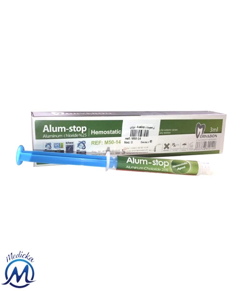 پاسخ: این ژل حاوی ۲۵٪ کلرید آلومینیوم (Aluminum Chloride 25%) است که غلظت استاندارد و مؤثری برای کنترل خونریزیهای دندانپزشکی محسوب میشود .