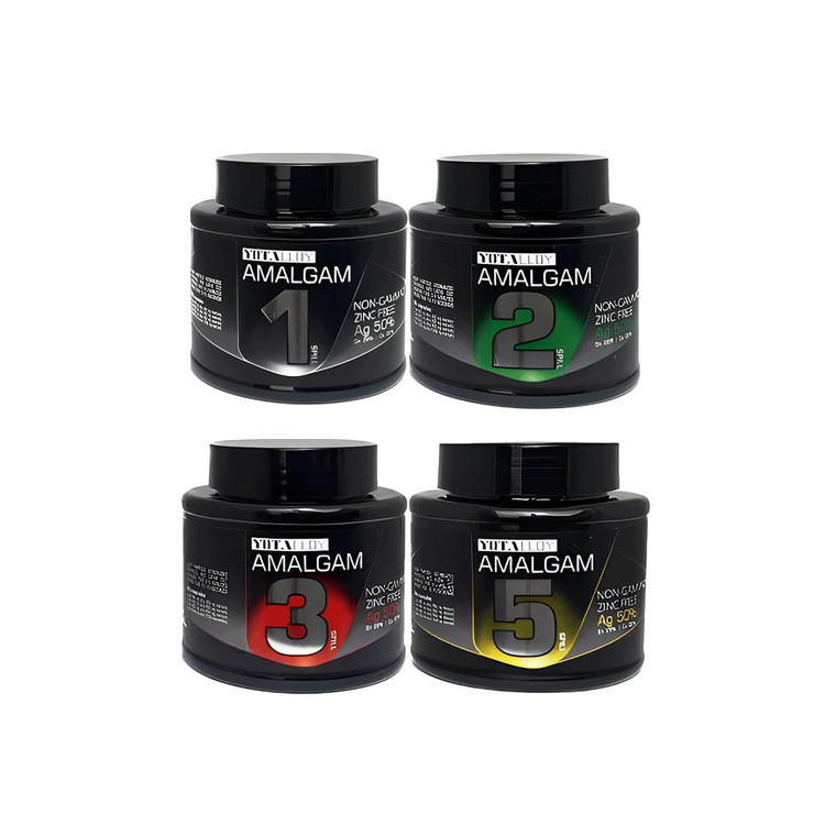 یکی از پر مصرف ترین مواد دندانپزشکی آمالگام ها به حساب می آیند. آمالگام یوتالوی محصول کشور ایران در بسته های 50 عددی و به صورت های 1 – 2 – 3 و 5 واحدی در بازار موجود می باشد. قابل توجه است که آمالگام های اروپایی به صورت 5 واحدی تولید نمی شوند. ترکیبات تشکیل دهنده این محصول از نقره، قلع و مس می باشد که بیشترین درصد آنرا نقره تشکیل می دهد.